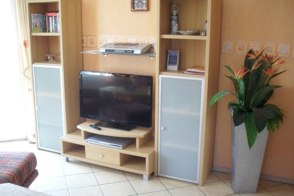 - Farbfernseher/Flachbildschirm (SAT-TV) DVD Player und HiFi-Anlage mit CD