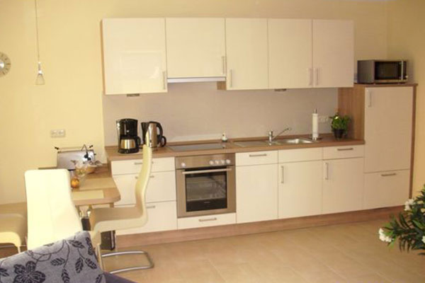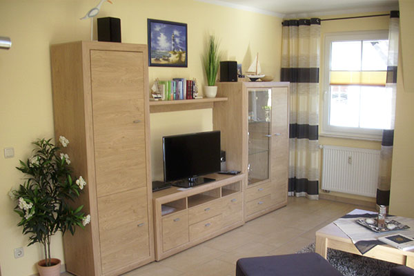 Ferienwohnung 6 „Strandburg“ – Strandstraße 54 c-d. Komfortwohnung mit ca. 50 m3 im 1. Obergeschoss mit Balkon und folgender Ausstattung:
